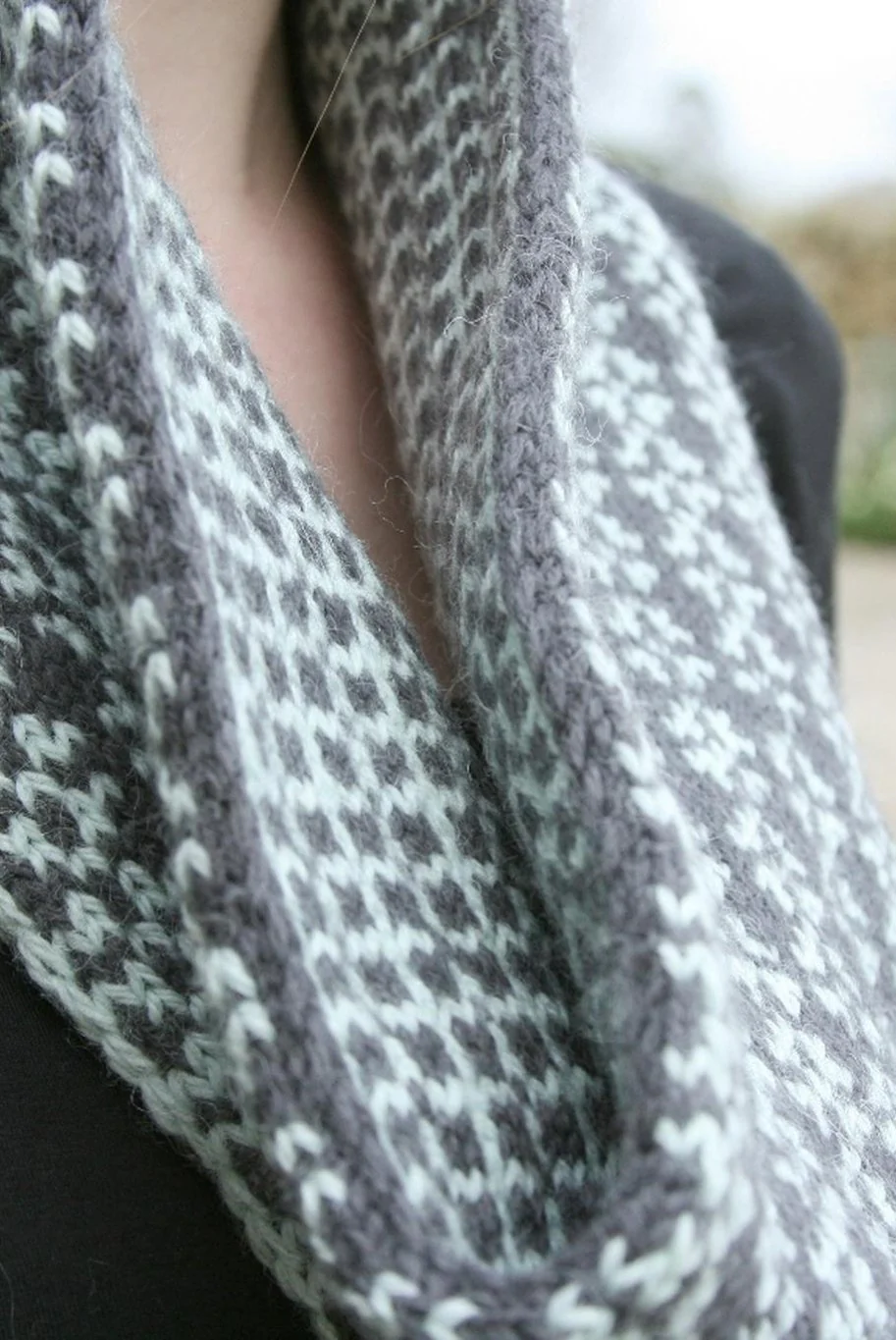 This stunning cowl features two complimentary Faroese colourwork patterns. Knitted in the round, using Fair Isle techniques, half the cowl shows one of the patterns and the reverse reveals the second. Once the cowl is knitted the two short ends are grafted together. This project is a great introduction to Fair Isle knitting.