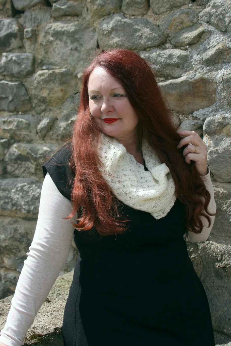 Susan is modelling the second size cowl throughout.