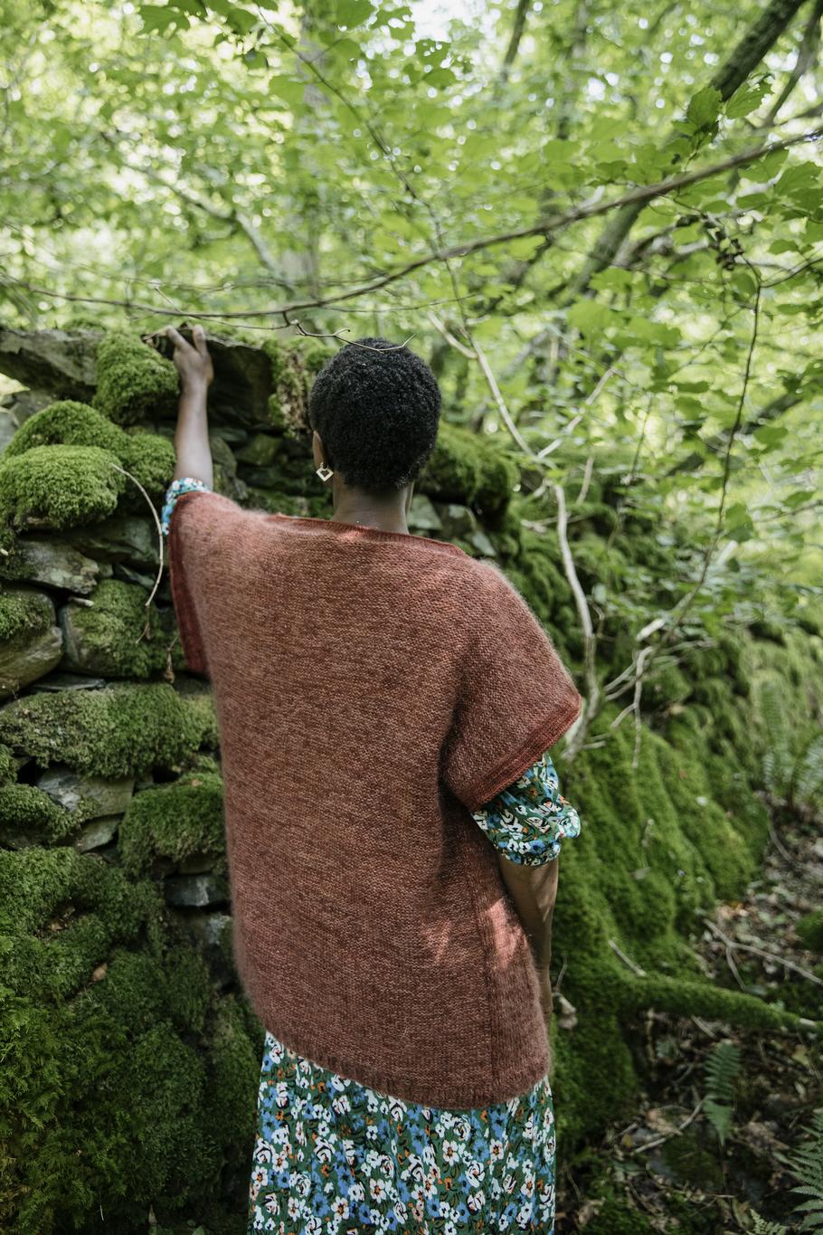 Vanessa Bell is perhaps best known as Virginia Woolf's older sister, but she was a talented artist and craftswoman in her own right. As a young woman she was expected to wear formal Victorian-style clothing, but Vanessa wanted to dress in a more organic way, wearing long, loose layers. The Vanessa jacket has an oversized fit, a soft, unstructured shape, deep pockets and simple fastenings - perfect for keeping off the chill in a cold artist's studio! It is worked by holding two strands of yarn together, creating a subtle, tweedy finish to the fabric. The jacket is knitted in pieces from the bottom up with short grown-on sleeves. The back is knitted in reverse stocking stitch and the fronts in stocking stitch.